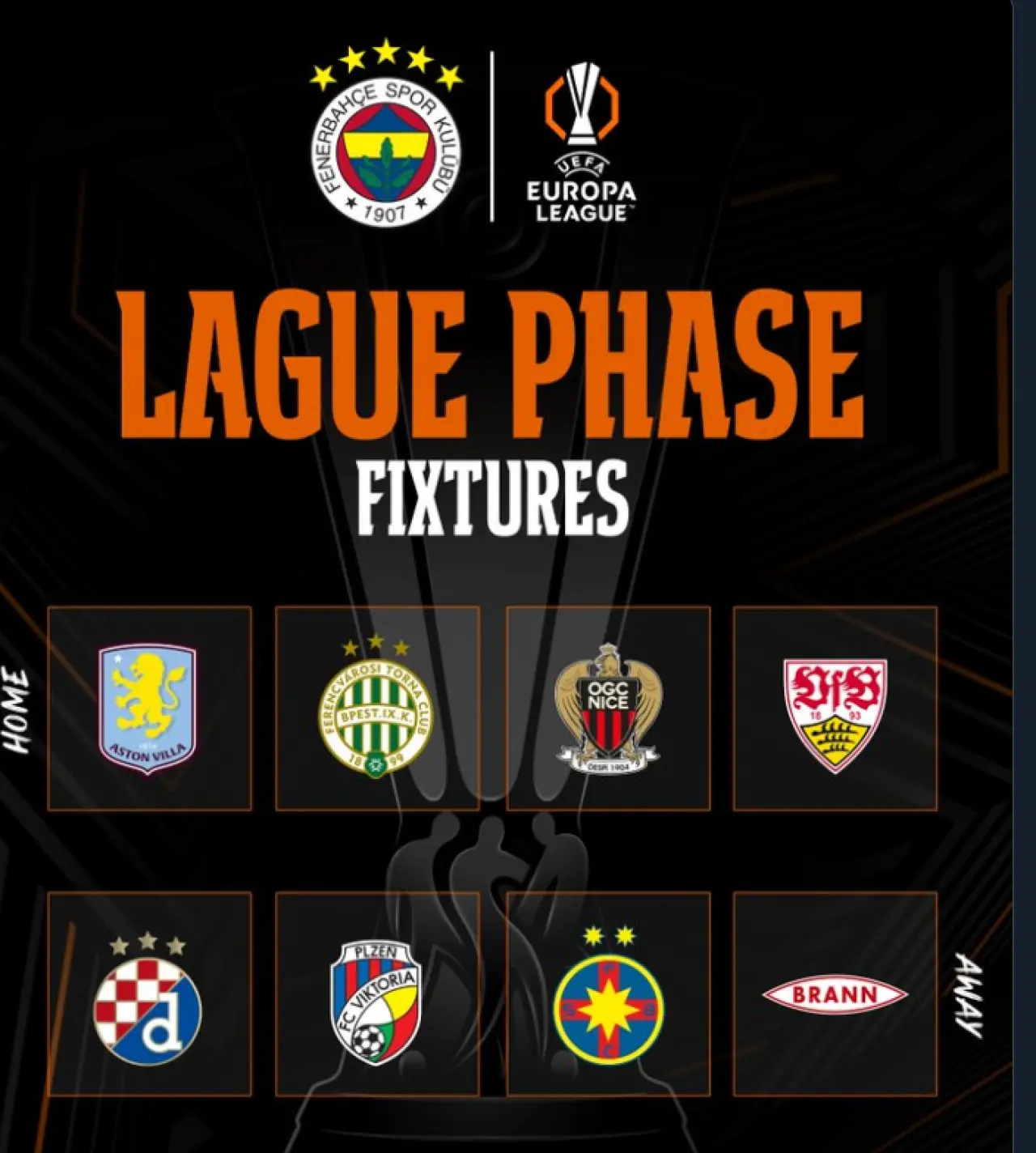 Fenerbahçe, lig aşamasında Aston Villa (İngiltere), Dinamo Zagreb (Hırvatistan) (D), Ferencvaros (Macaristan), Viktoria Plzen (Çekya) (D), Nice (Fransa), FCSB (Romanya) (D), Stuttgart (Almanya) ve Brann (Norveç) (D) ile eşleşti.