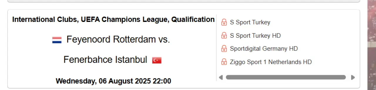 Feyenoord Fenerbahçe maçı Türkiye'de ssport plus yanı sıra uydudanda şifresiz izleyebilirsiniz. Alman Sportdigital Germany ve Hollanda kanalı Ziggo Sport 1 maçı canlı olarak yayınlayacak. Ayrıca yasal iddia sitesi nesine üzerinden de maçı ücretsiz izleyebilirsiniz.