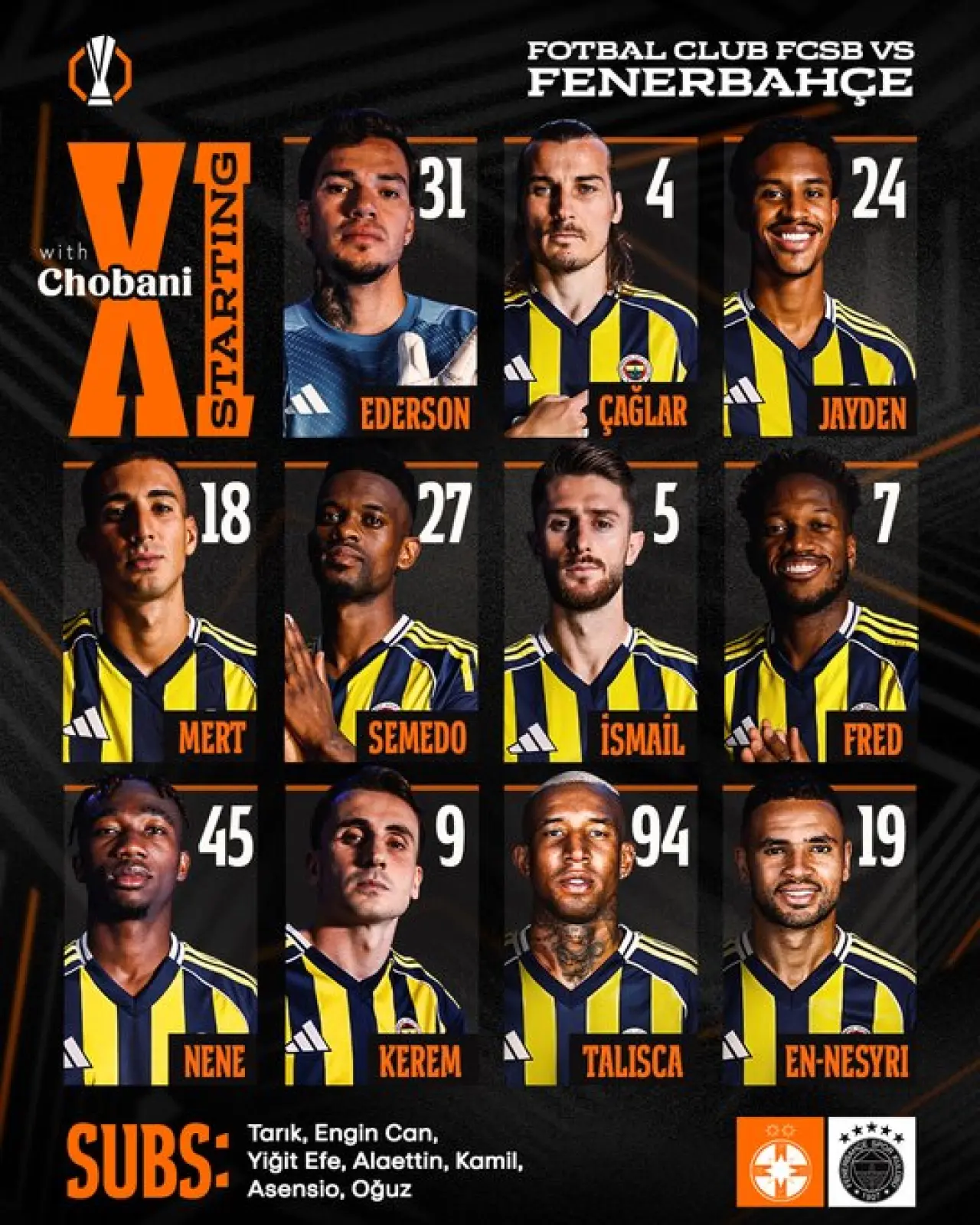 FENERBAHÇE: Ederson, Mert, Çağlar, Oosterwolde, Semedo, İsmail Yüksek, Fred, Nene, Kerem , Talisca, En-Nesyri