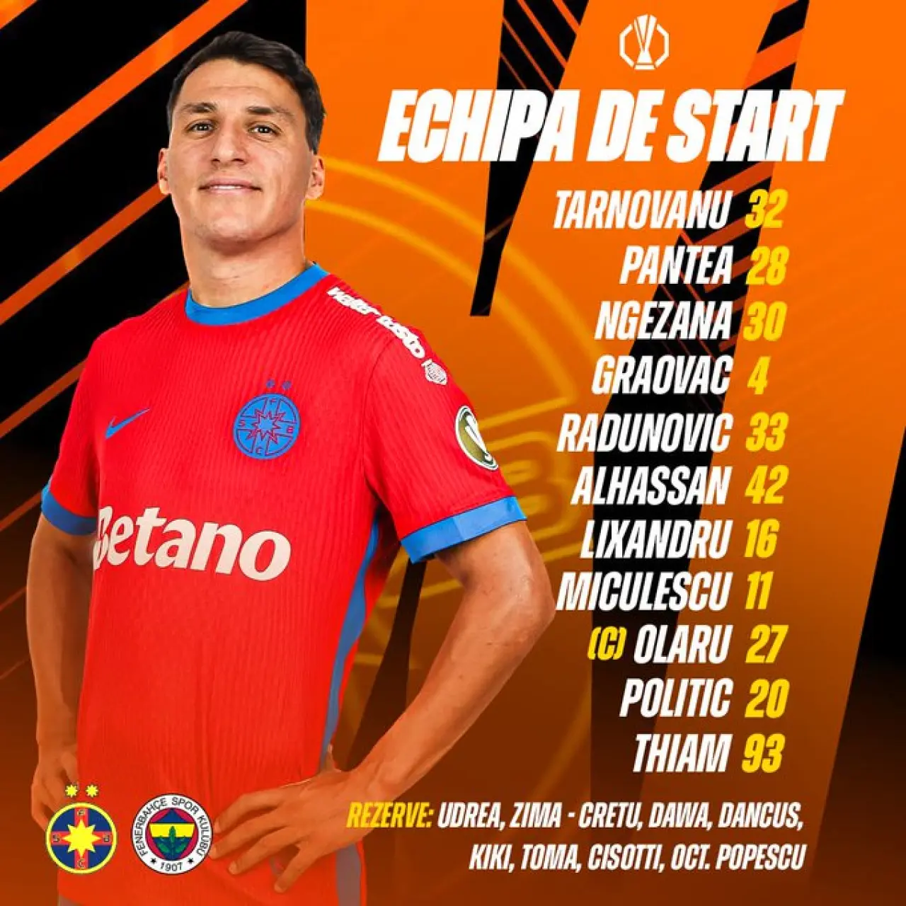 FCSB: Tarnovanu, Pantea, Ngezana, Graovac, Radunovic, Alhassan, Lıxandru, Mıculescu, Olaru, Politic, Thiam