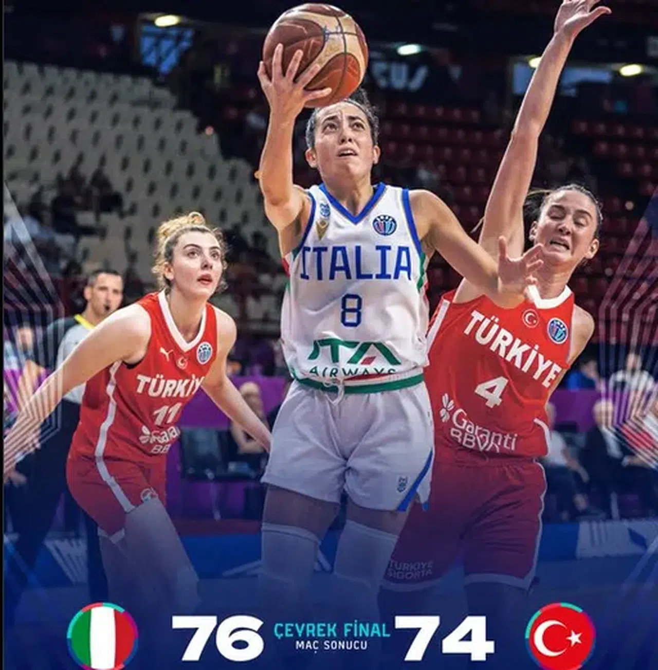 Türkiye Kadın A Milli Basketbol Takımı“Potanın Perileri”, 2025 FIBA Kadınlar Avrupa Şampiyonası çeyrek finalinde İtalya ile karşı karşıya geldi. İki takımın titiz bir mücadeleye sahne olan maç, uzatmalara gitti. Sonuç olarak Türkiye, zorlu bir rakip olan İtalya'ya 76-74'lük skorla mağlup oldu.