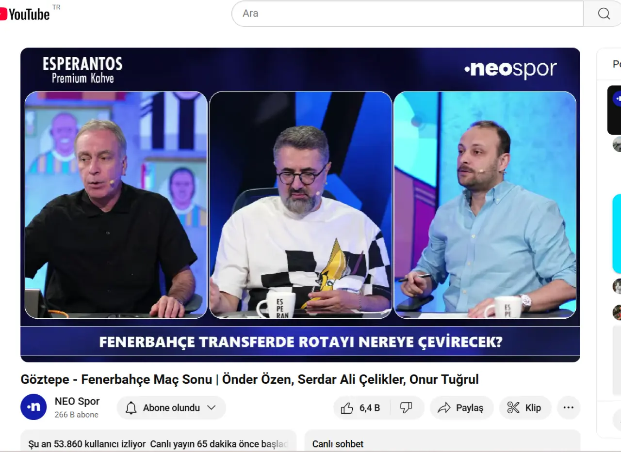Gazeteci Serdar Ali Çelikler'in sahibi NEO Spor'da bot tartışmalarına dahil olan youtube kanallarından biri oldu.
