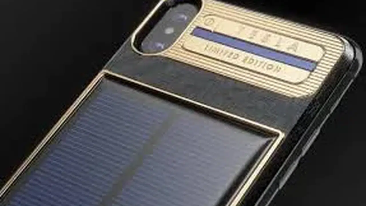 Havyar iPhone X Tesla bir güneş pili ile donatılmış. Pil, telefonunuzu şarj etmek için güneş enerjisinden yararlanıyor.