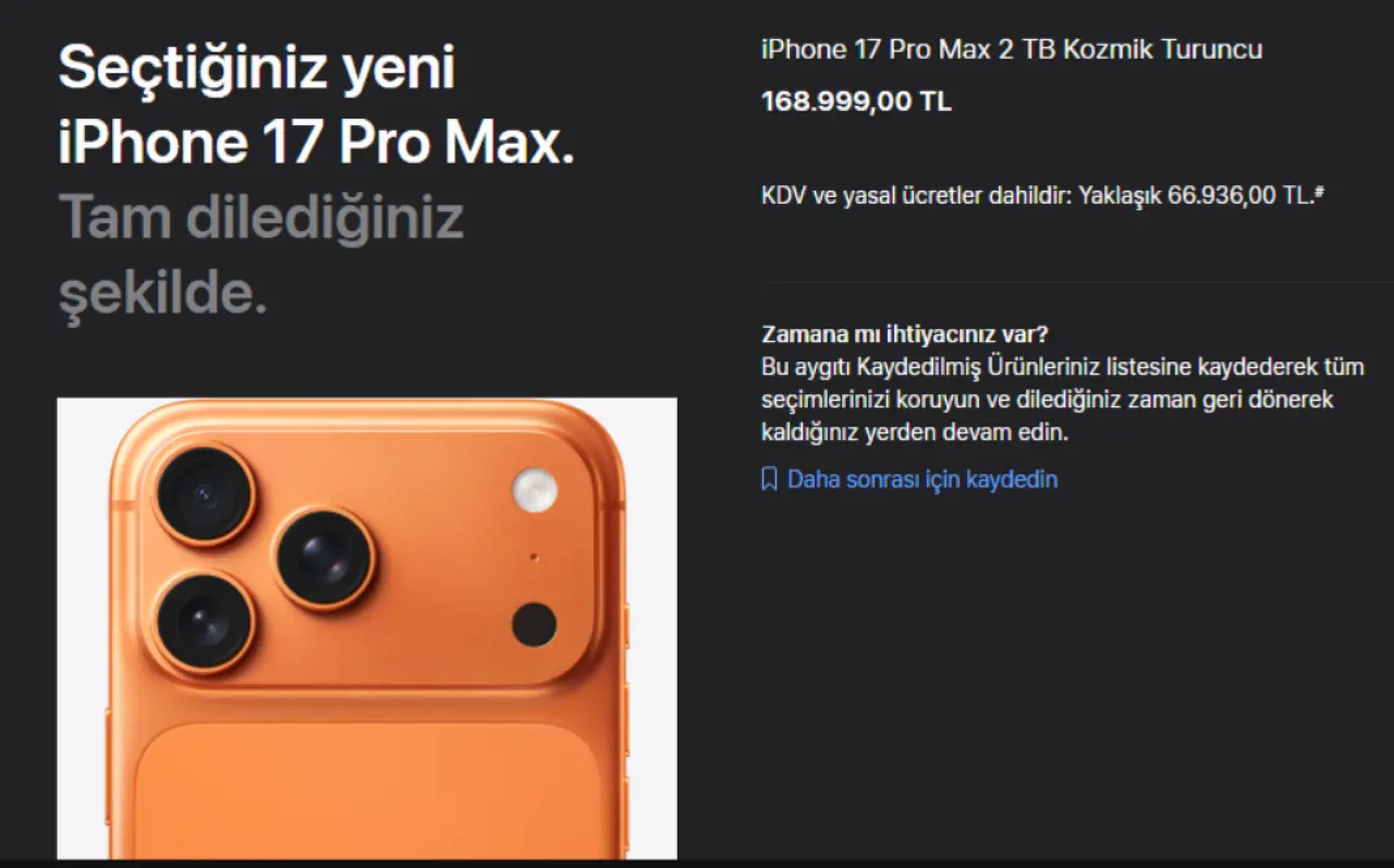 iPhone 17 Pro Max için belirlenen fiyatlar şu şekildedir: