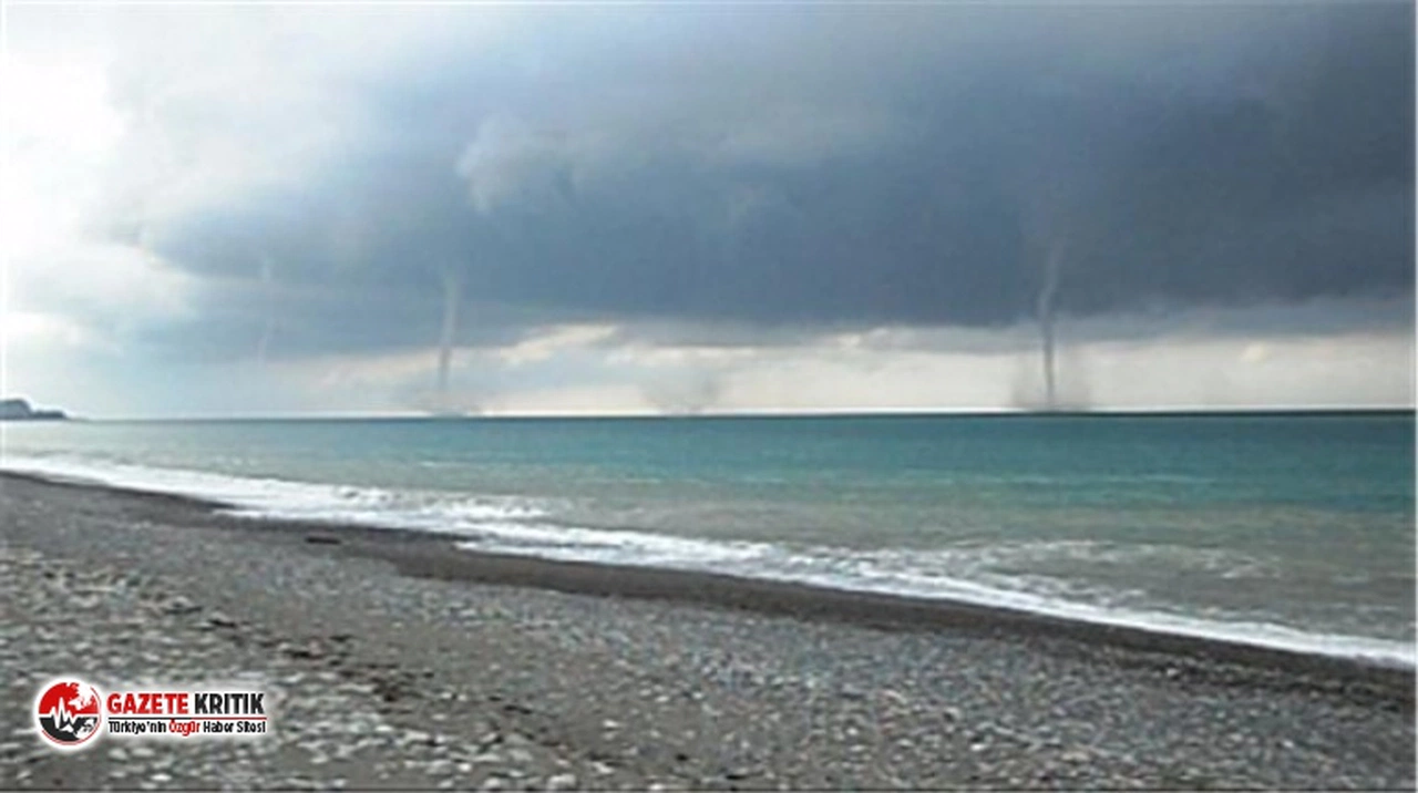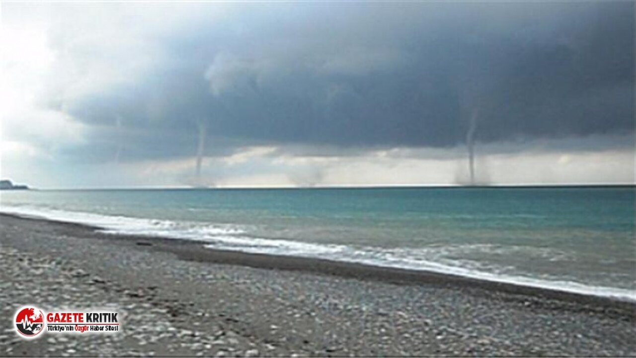 Kıyıya yakın bölgede etkili olan metrelerce uzunluktaki hortum, paniğe yol açtı.