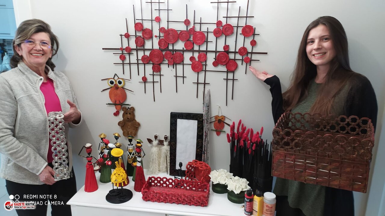 Gazete kağıdı ile objelerin yapımının gösterildiği videoları bir süre izledikten sonra evde yeğeni Cansu Çelebi ile çalışmalara başladıklarını belirten Ayvalıoğlu, “terapi oluyor” dediği bu güzel eserlerin yapımına başlama öyküsünü şöyle özetledi: