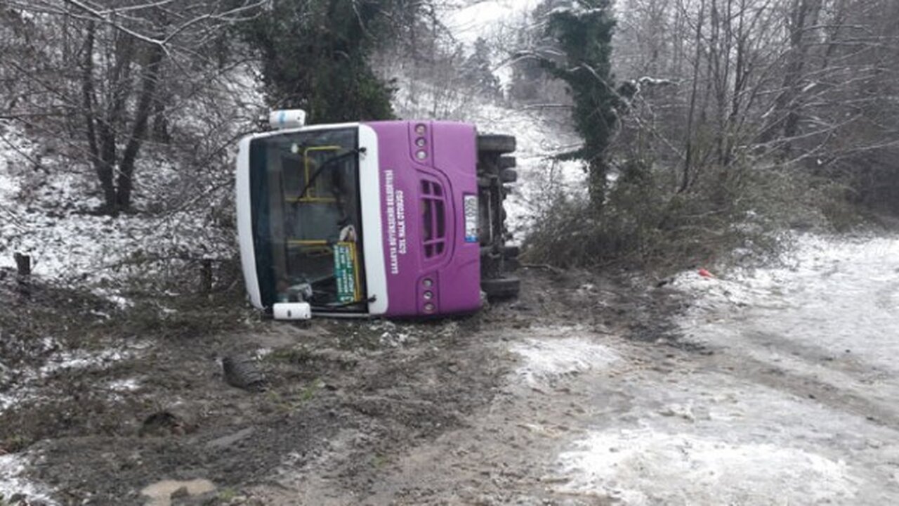 Kaza sabah saatlerinde, Sapanca Çamlık mevkiinde meydana geldi. Adliye, Akçay ve Fevziye mahallelerinden Sapanca merkeze yolcu taşıyan Selim Sezer yönetimindeki 54 J 0095 plakalı özel halk otobüsü, karla kaplı yolda kayarak devrildi. Kazada Pınar Kamışoğlu (48) ile kızı yaralandı. Olay yerine gelen 112 Acil ekipleri yaralanan anne ve kızını Sapanca İlçe Hastanesi'ne kaldırdı. Pınar Kamışoğlu buradan Sakarya Üniversitesi Eğitim ve Araştırma Hastanesi'ne sevk edildi. Jandarma kazayla ilgili soruşturma başlattı.