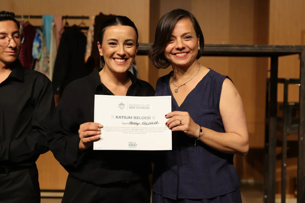 Karabağlar Belediye Başkanı Helil Kınay da oyunu izleyerek kursiyerlere destek verdi. Oyun sonunda aralarında belediye çalışanlarının da bulunduğu oyuncular Havva Adal, Fatih Ağılkaya, Mehtap Gülenler, Fatih Pala, Merve Görmüş, Barış Uslan, Büşra Ertekin, Şenay Ayazlı, Yağmur Özcan Aydın, Hayri Aydın ve Nevaf Bilmen’i tebrik eden Belediye Başkanı Helil Kınay katılım sertifikalarını verdi.