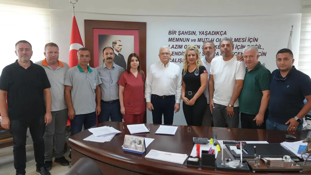 Burhaniye Belediye Başkanı Ali Kemal Deveciler ve DİSK/Genel-İş Sendikası yetkililerinin bir