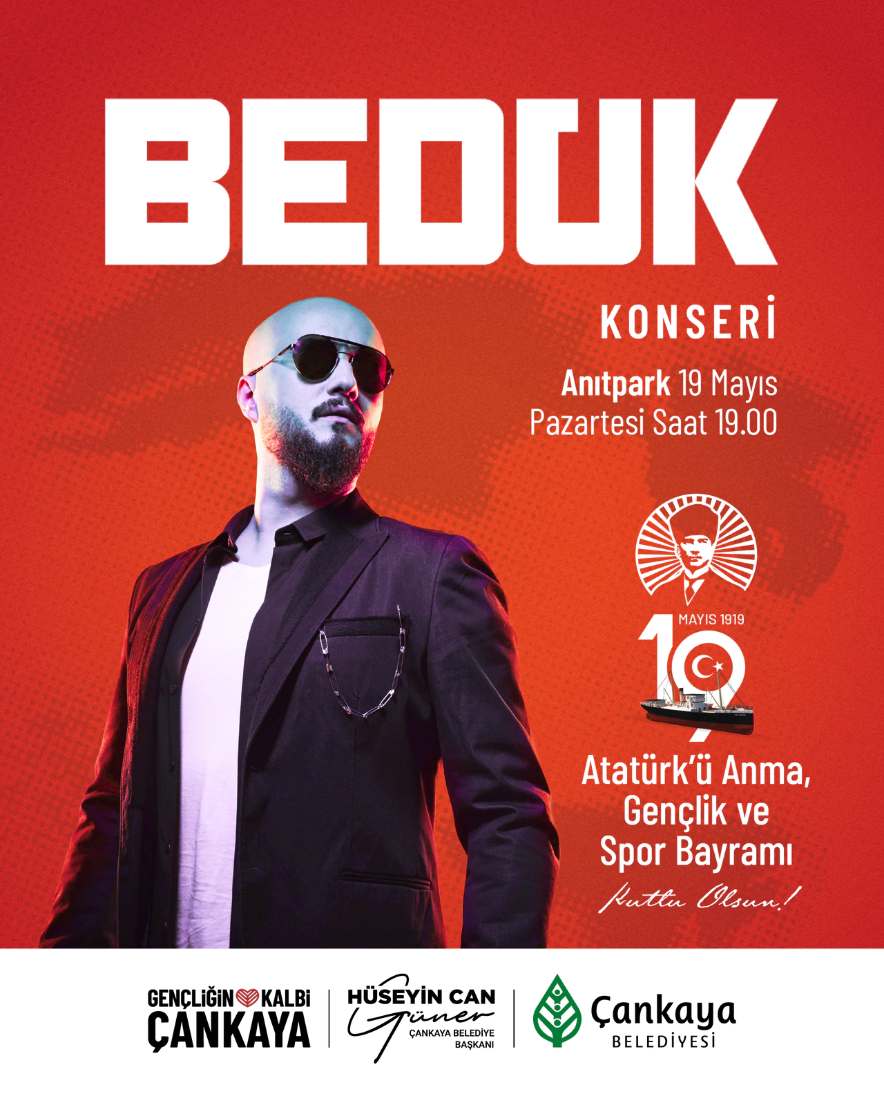 19 Mayıs'ta festivalin son büyük konserinde ise Çankaya, ünlü sanatçı ve söz yazarı "Bedük"ü gençlerle buluşturacak. Anıtkabir'in yanı başındaki Anıtpark'taki konserde ünlü sanatçı binlerce Çankayalı ile bir arada 19 Mayıs'ı kutlayacak.