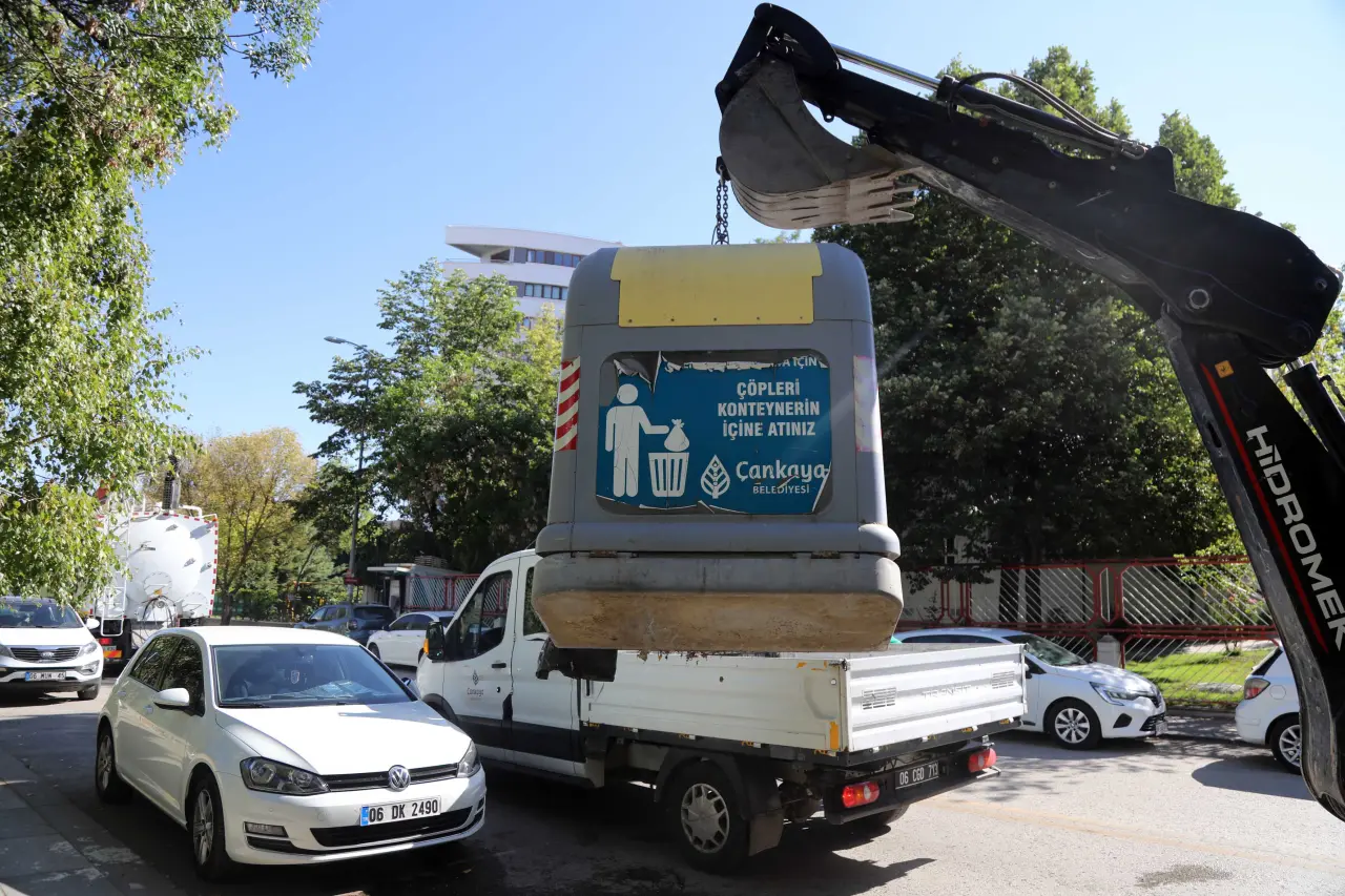 Çankaya Belediyesi, ilçe temizliğinde taviz vermeden çalışmalarını sürdürüyor. Eskiyen konteynerleri yenileyen ve ihtiyaç duyulan bölgelere yenilerini yerleştiren belediye, kent sağlığını korumak amacıyla kullanım ömrü dolan konteynerleri değiştiriyor. Bu kapsamda ilçe geneline 1.500 yeni konteyner yerleştirilmeye başlandı. İlk etapta Çiğdem Mahallesi’nde ömrünü tamamlayan 3 metreküplük konteynerler toplanarak yerlerine galvaniz çöp konteynerleri konuldu.