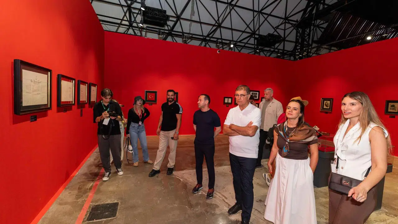 Atatürk sergisinden de söz eden Başkan Tugay, “Sergide inanılmaz parçalar var. Atatürk’ün eşyaları, çok özel mektuplar belgeler var. Atatürk’ün kapak olduğu Times Dergisi’nin 10 örneğinden bir tanesi burada. Atatürk’ün kendi el yazısıyla yazdığı krokiler var. Neticede bunlar hepimizi duygulandıran şeyler. Ama şunu unutmamamız lazım, İzmir o Kurtuluş Savaşı’nın, milli mücadelenin her boyutuyla hissedilerek yapıldığı şehir. Türkiye’de her şehir kahraman. O mücadeleye katılan her insan kahraman. Ama İzmir’in canı çok yandı. İzmir’in işgaliyle başlayan bir mücadeleden ve İzmir’in kurtuluşuyla başlayan bir zaferden bahsediyoruz. Başka bir İzmir yok. İzmir’e ne yapacaksak, o duyguyu hissederek yapmalıyız. O mücadeleyi yapan herkesi minnetle anıyorum. Böyle bir neslin torunları olduğumuz için gurur duyuyorum. Türkiye çok büyük ve güzel bir ülke. Biz geçmişimizde böylesine zor şeyleri başardık. Bugün de yarın da çok daha iyi şeyleri başarabilecek insanlarız. Bu gibi sergilerde çocuklarımız, gençlerimiz o duyguyu hissedecek. Başları daha dik, alınları daha açık olacak. Çalışmaya daha istekli olacaklar. Bunları onun için yapıyoruz, sadece bir gösteri değil” şeklinde konuştu.