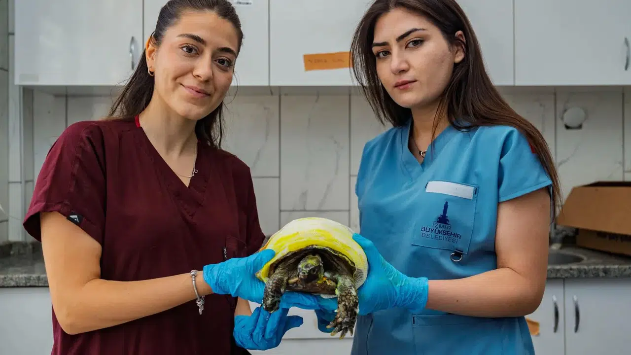 Tedavisi süren kaplumbağa, İzmir Doğal Yaşam Parkı’na sevk edildi. Tedaviye yanıt vermesi ve tam anlamıyla iyileşmesi halinde yaşam alanına geri dönecek.