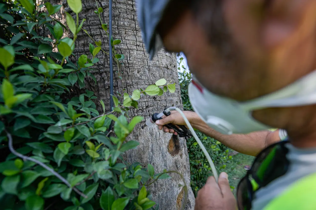 Palmiye böceğini dışardan görmenin mümkün olmadığını kaydeden Özbek, “Ancak ileri seviyede ağaçta solgunluk olduğunda kendini gösterebiliyor. Kültürpark herkesin yoğun kullandığı bir alan. Eski yöntemlerle çok yoğun bir ilaçlama yapmak zorunda kalabilirdik. Bu sistem lokal olarak sorunu çözmemizi sağlıyor. Ağaçta enfekte durumu olduğu takdirde direk ağacın tepesinden, gövde üzerinden ya da toprak altı yöntemle ilaçlama yaparak müdahalemizi gerçekleştiriyoruz. Bu yöntem, dünyada sayılı Türkiye’de de ilk defa İzmir’de uygulanan bir yöntem” ifadelerini kullandı.