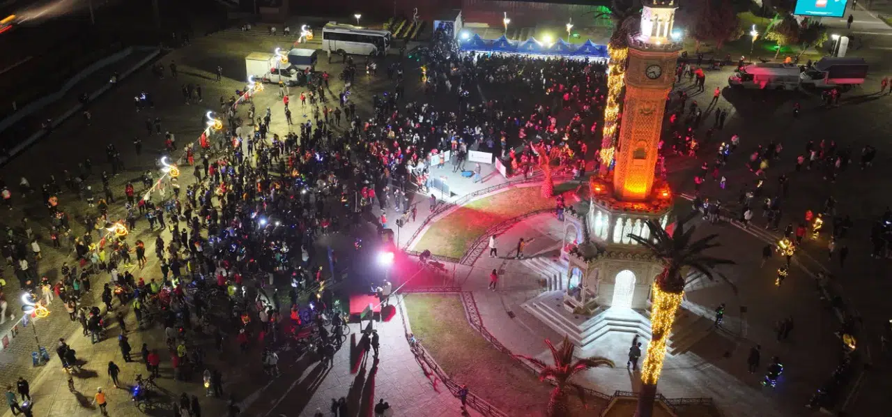İzmir Büyükşehir Belediyesi, yılın en uzun gecesi 21 Aralık’ta 6,5 kilometrelik koşu düzenledi. En Uzun Gece Koşusu’na katılan İzmirliler, vücutlarına sardıkları ışıklarla renkli görüntüler oluşturdu.