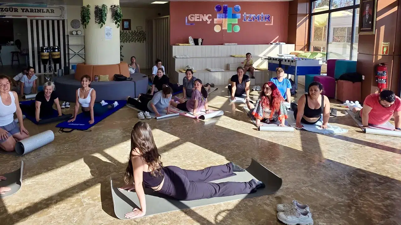 İzmir Büyükşehir Belediyesi bünyesinde faaliyet gösteren Genç İzmir tarafından “Yoga Saati” başlığıyla düzenlenen yoga atölyesine katılan gençler, hem bedensel esnekliklerini geliştirdi hem de zihinsel rahatlama imkânı buldu.