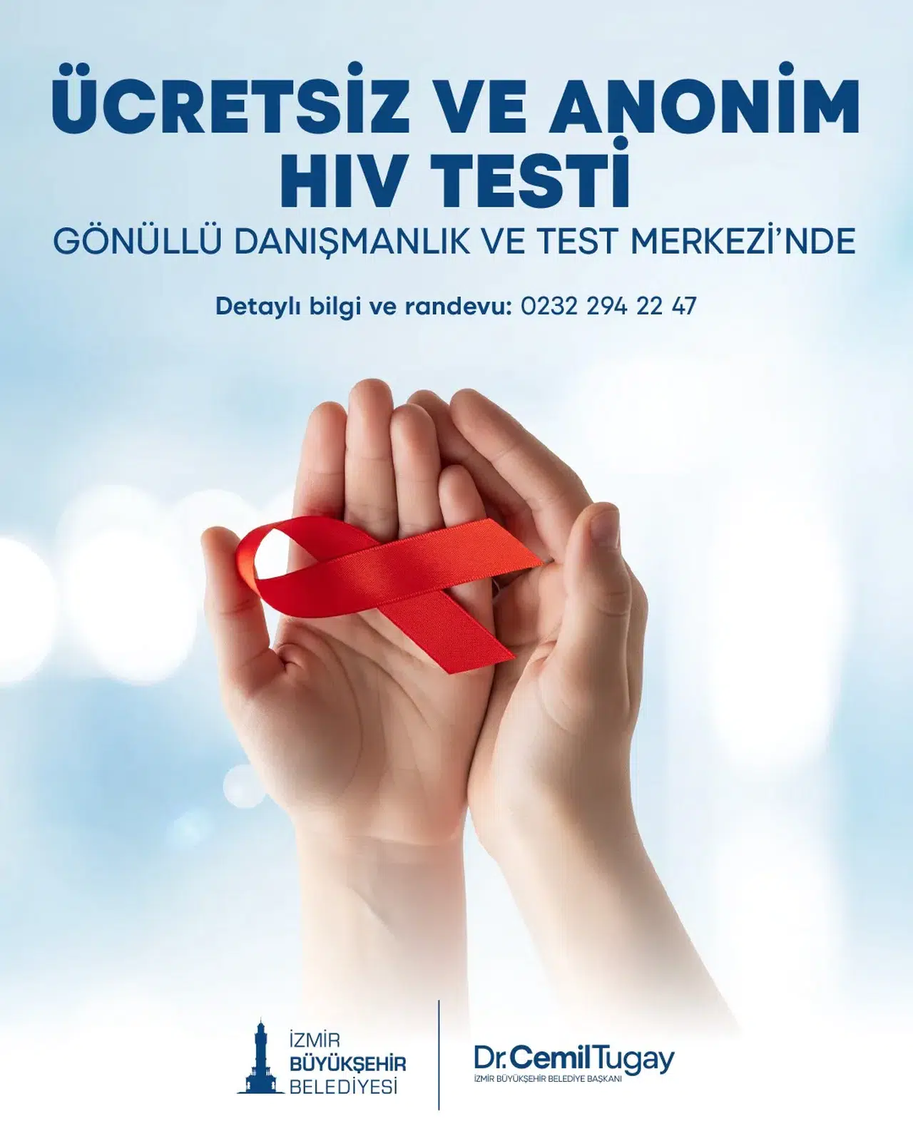 İzmir Büyükşehir Belediyesi, Sağlık Bakanlığı iş birliği ile kimlik bilgisi paylaşımı olmadan ücretsiz HIV testi hizmeti vermeye başladı.