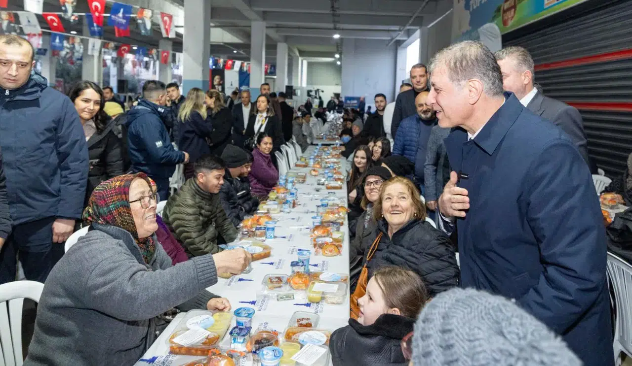 Başkan Dr. Cemil Tugay, Buca Kozağaç Kapalı Pazaryeri'ndeki iftar programına katılarak oruç açtı. Etkinlikte Buca Belediye Başkanı Görkem Duman, İzmir Büyükşehir Belediye Meclisi Cumhuriyet Halk Partisi (CHP) Grup Başkanvekili Altan İnanç ve çeşitli yerel yöneticiler ile birlikte çok sayıda vatandaş yer aldı. 3 bin kişilik bir menü hazırlandığı belirtilen programda, Başkan Tugay, katılımcılarla sohbet ederek hatıra fotoğrafları da çektirdi. Ayrıca etkinlik boyunca çocuklara pamuk şeker ikram ederek, atmosferin neşeli geçmesine katkıda bulundu.