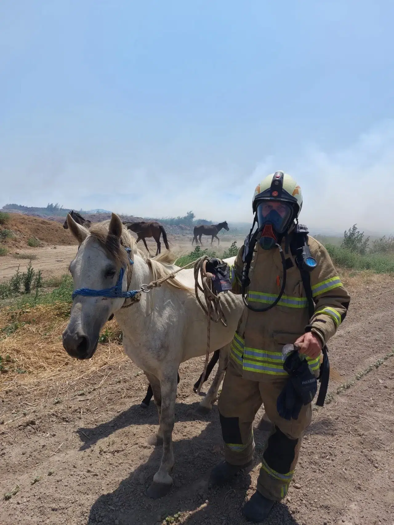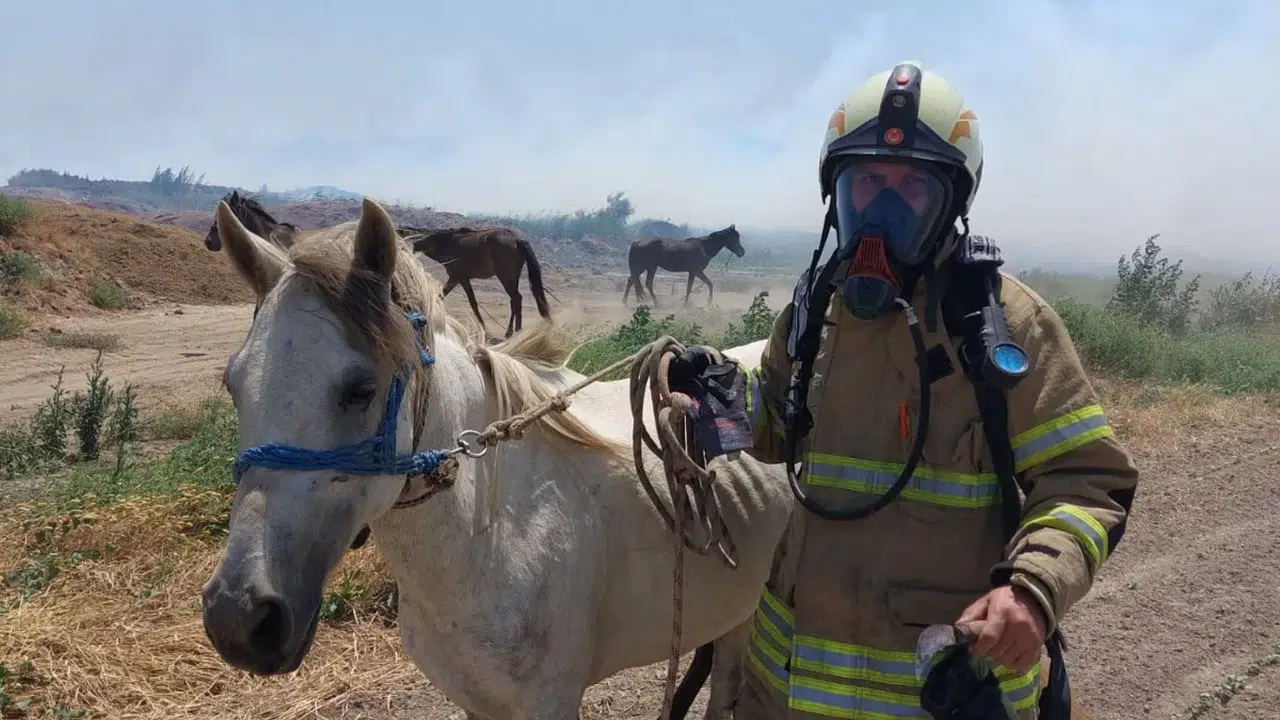 İzmir Büyükşehir Belediyesi İtfaiye Dairesi Başkanlığı ile Veteriner İşleri Dairesi Başkanlığı, Seferihisar ile Menderes arasında geniş bir alanı etkileyen yangınlar nedeniyle aralıksız çalışıyor. İtfaiye ekipleri bir yandan alevleri kontrol altına almak için mücadele ederken, diğer taraftan bölgede bulunan hayvanları kurtarıyor. Ot yangını esnasında tarlada bağlı durumdaki bir at son anda yetişen ekipler tarafından güvenli bölgeye ulaştırıldı. Alevlerin arasından kurtarılan canlılar arasında kuş yavruları da vardı.
