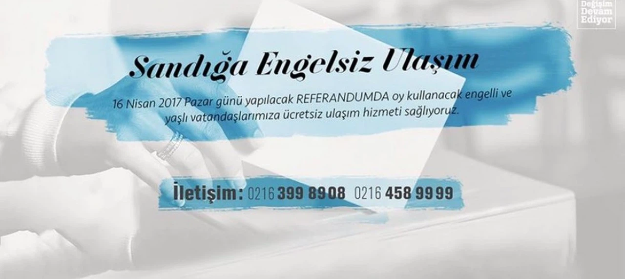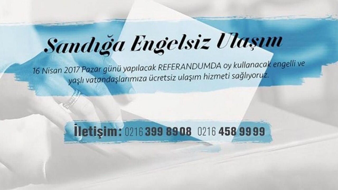 Maltepe Belediyesi, 16 Nisan 2017 Pazar günü yapılacak referandum için örnek bir çalışmaya imza atmaya hazırlanıyor. Belediye, sandığa ulaşım sıkıntısı yaşayacak engelli ve yaşlı yurttaşları gün boyu araçlarıyla oy kullanacakları sandıklara taşıyacak.