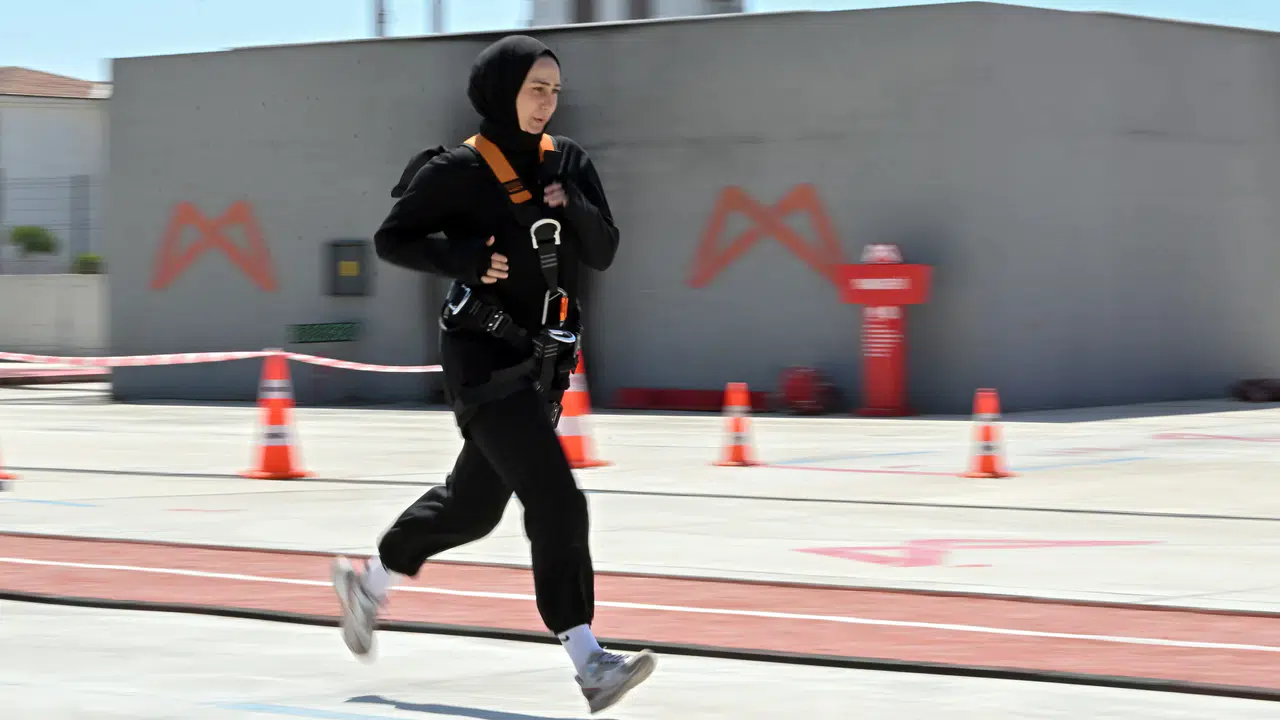 Yazılı sınavın ardından itfaiye eri adayları, zorlu parkurda ter döktü