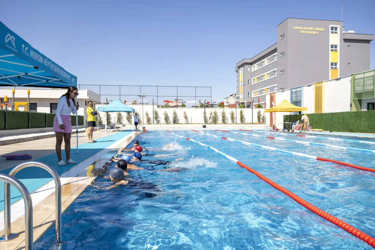 Mersin Büyükşehir Belediyesi Gençlik ve Spor Hizmetleri Dairesi, yaz döneminde Toroslar Spor Parkı’nda “7’den 70’e Yüzme Kursu” düzenliyor. Eylül ayının ilk haftasına kadar sürecek olan ücretsiz eğitimler, 2 haftalık 5 kur halinde veriliyor. Haftada 4 gün yapılan 50 dakikalık derslerde yaş ve seviyelere göre ayrılan kursiyerler, 4 antrenör eşliğinde yüzmenin temel tekniklerini öğreniyor. Her gün 6 seansla toplam 360 kişiye ulaşılan kursta, hem fiziksel gelişim hem de zihinsel sağlık destekleniyor.